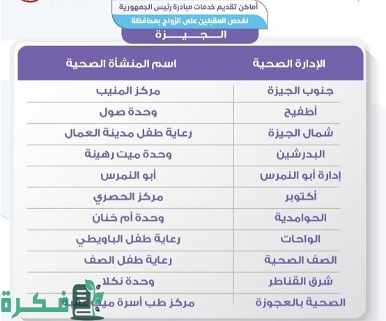 الكثير من الشباب يتسألون عن الأماكن التي يمكن من خلالها استخراج الشهادة الصحية للزواج حيث ان الفترة الاخيرة شهدت اهتمام خاص فحوصات الزواج بعد إعلان الرئيس السيسي عن اهمية الفحوصات الزواج حفاظا على صحة الزوجين وبناء حياة أسرية سليمة واماكن استخراج الشهادة الصحية للزواج بمحافظة الجيزة تأتي كالتالي: